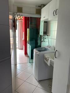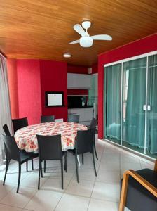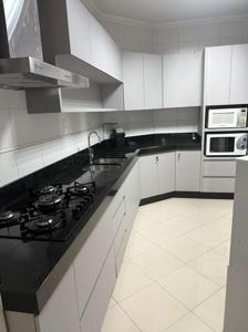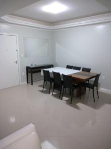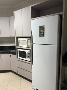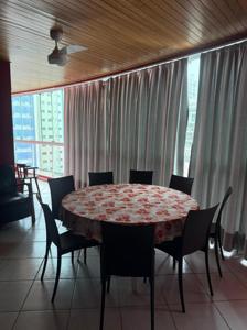 O apartamento conta com área de serviço separada, cozinha com microondas, forno, fogão, acessórios de cozinha, geladeira, tudo completinho para lhe receber, sala de jantar separada com mesa para até 8 pessoas e estar.
