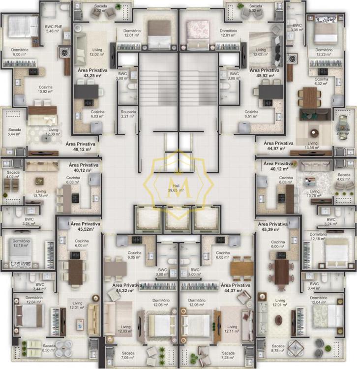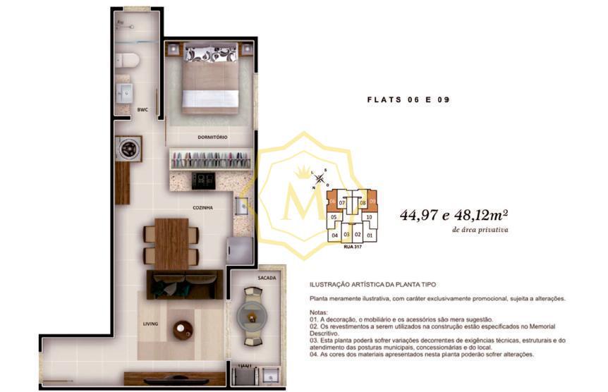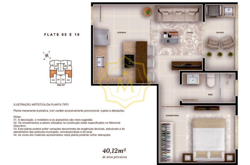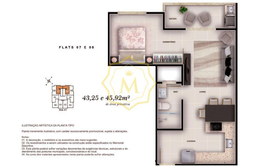 Os apartamentos serão entregues sem mobilia, porém há a possibilidade de adquirir a mobilia no conceito Smart e Premium (consulte valores)