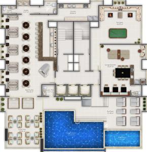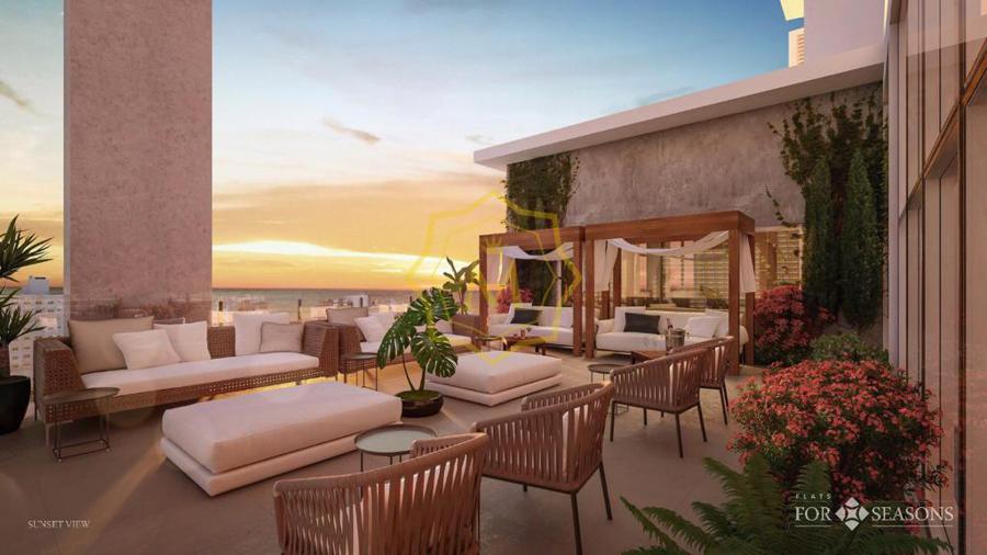 Área de lazer completa na cobertura, com vista panorâmica de 360º acessível a todos os moradores de Itapema.