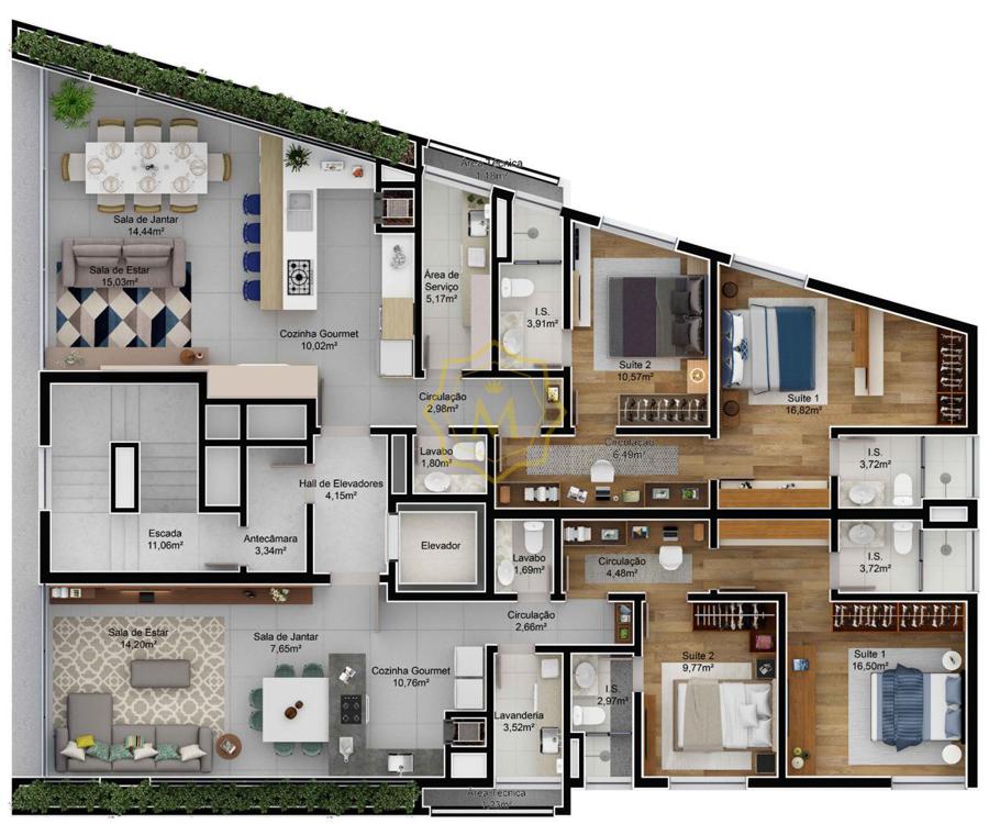 • De acordo com a Lei nº 4591/64, informamos que as imagens aqui contidas, possuem apenas caráter ilustrativo e que a aquisição de mobílias e peças decorativas são de responsabilidade do condomínio/condômino.