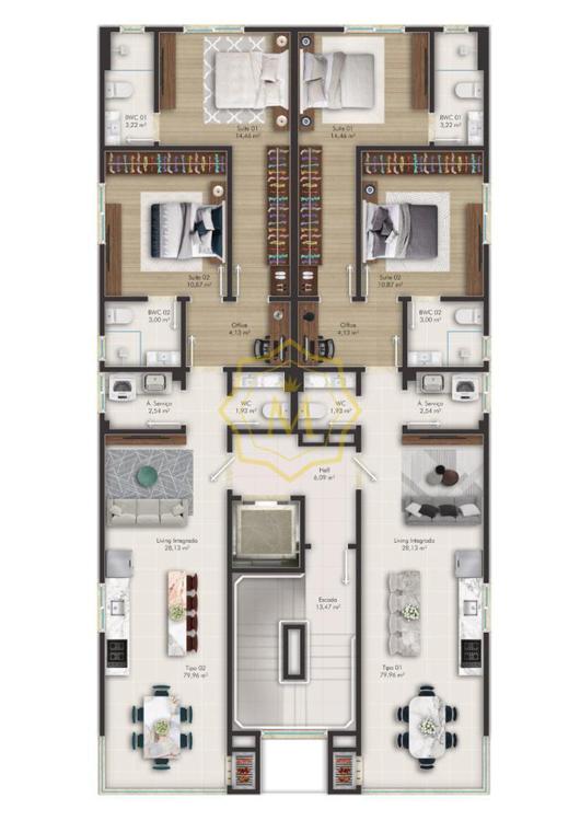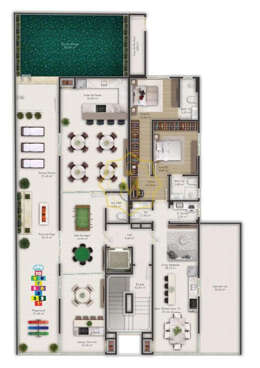 • De acordo com a Lei nº 4591/64, informamos que as imagens aqui contidas, possuem apenas caráter ilustrativo e que a aquisição de mobílias e peças decorativas são de responsabilidade do condomínio/condômino.