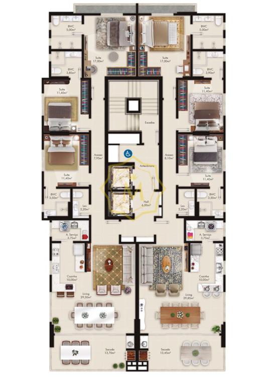 • De acordo com a Lei nº 4591/64,informamos que as imagens aqui contidas, possuem apenas caráter ilustrativo e que a aquisição de mobílias e peças decorativas são de responsabilidade do condomínio/condômino.